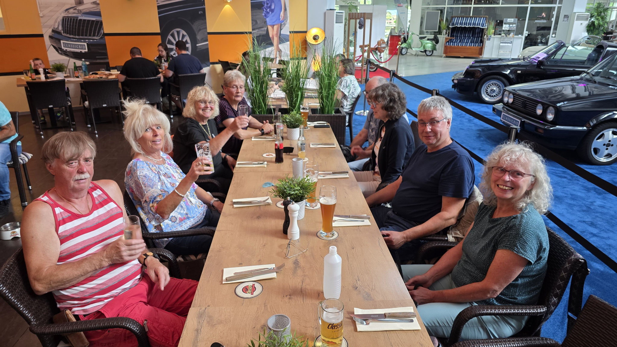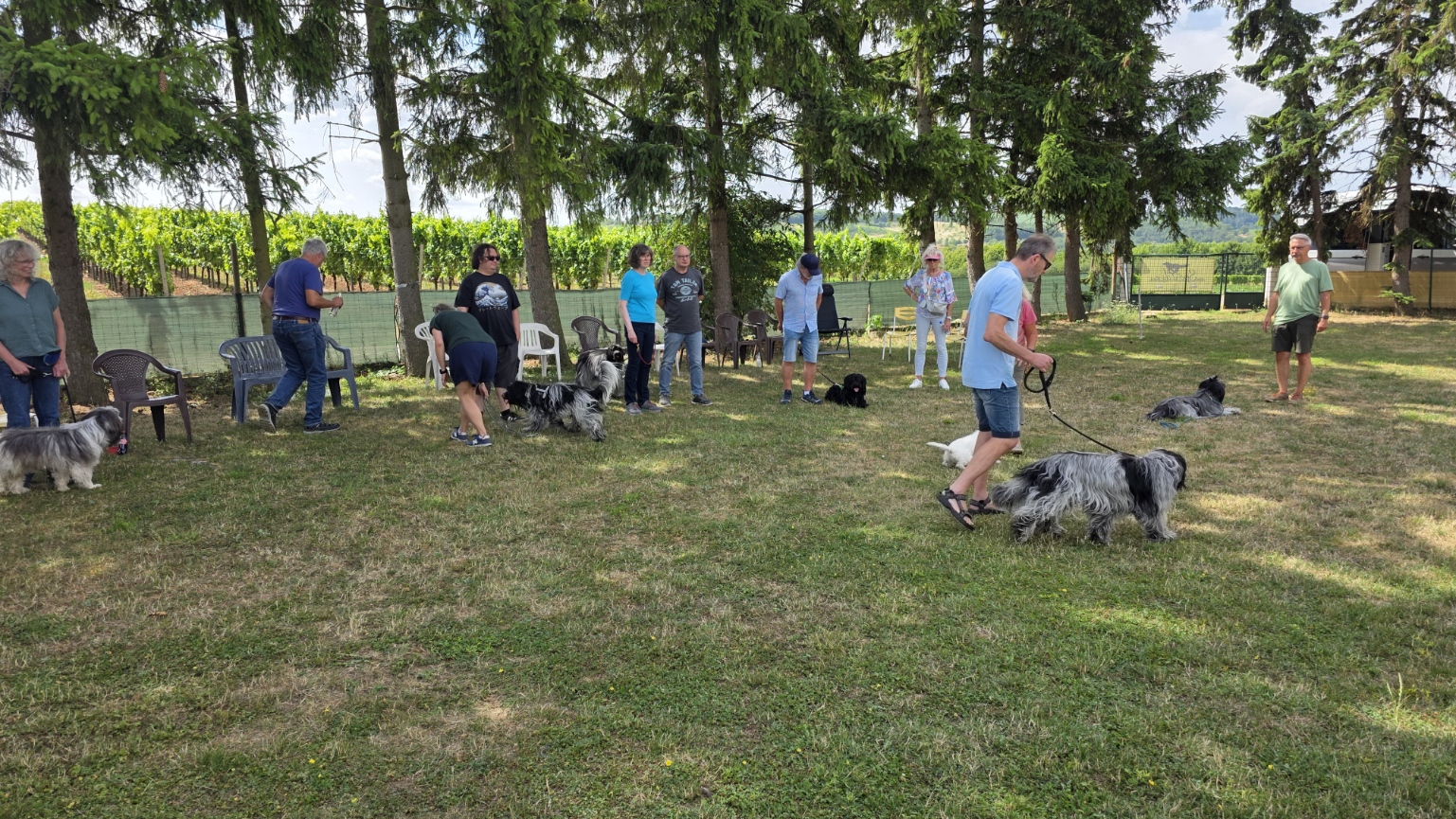 Dieses Jahr gab´s ein großes Sternentänzertreffen mit dem B- Wurf und C- Wurf. Deshalb haben wir uns entschlossen auf dem Hundeplatz der SportdoX in Wöllstein zu feiern. Manche waren schon Samstag angereist und abends sind wir dann in unsere Lieblingspizza nach Grolsheim. Sonntag dann Treffen in Wöllstein. Da es sehr schwül war haben wir nur einen kurzen Spaziergang durch die Weinberge gemacht. Anschließend hatte unsere Trainerin Gudrun einen kleinen Parcours aufgebaut. Und dann gabs endlich wieder Essen Jürgens Toscana Hähnchen und andere Leckereien. Da ein Gewitter aufzog mussten wir fluchtartig packen. Deshalb wurde auf unserem Balkon weitergefeiert. Leider sind da keine Bilder mehr zu finden. Schön wars und wir freuen uns auf`s nächste Treffen 2026.